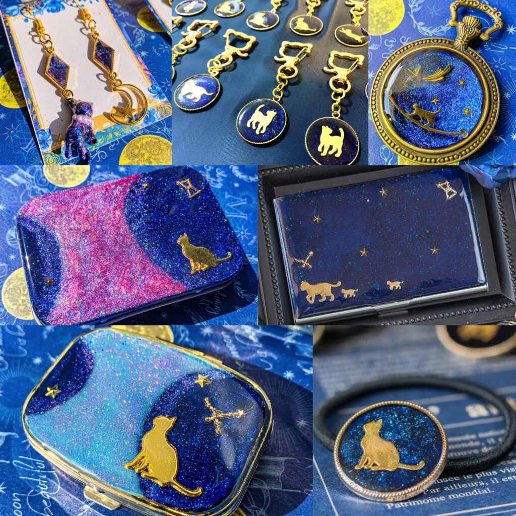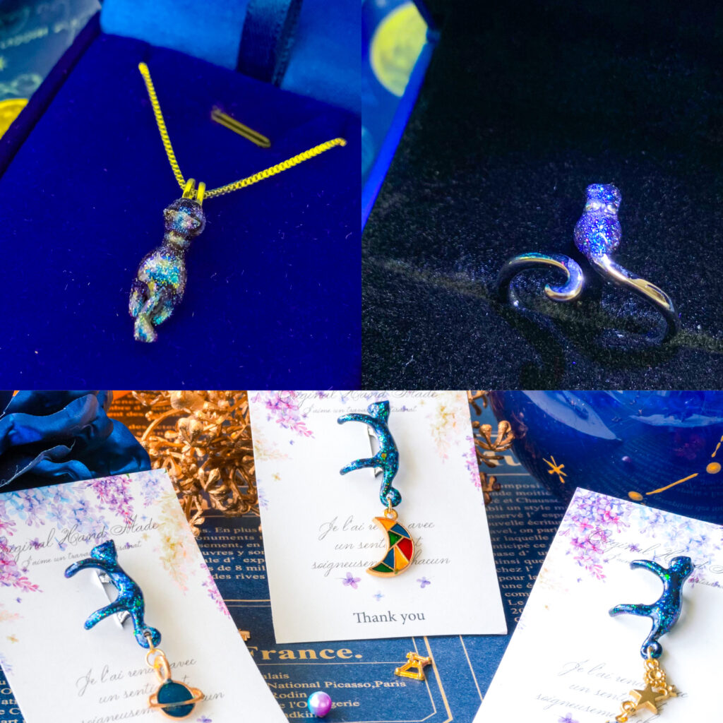 ソラネコ 〜【宇宙】×【猫】が織りなす物語を貴方へ 〜 【宇宙】×【猫】をテーマに、ねこ達が星空の下紡ぐ物語を込めた、アクセサリー等を製作しております。 【ホールMAP/D4】 店名 ソラネコ 出店日 3日間 場 所 タワーホール 目 的 お買い物 宙フェス夜市オンラインショップ