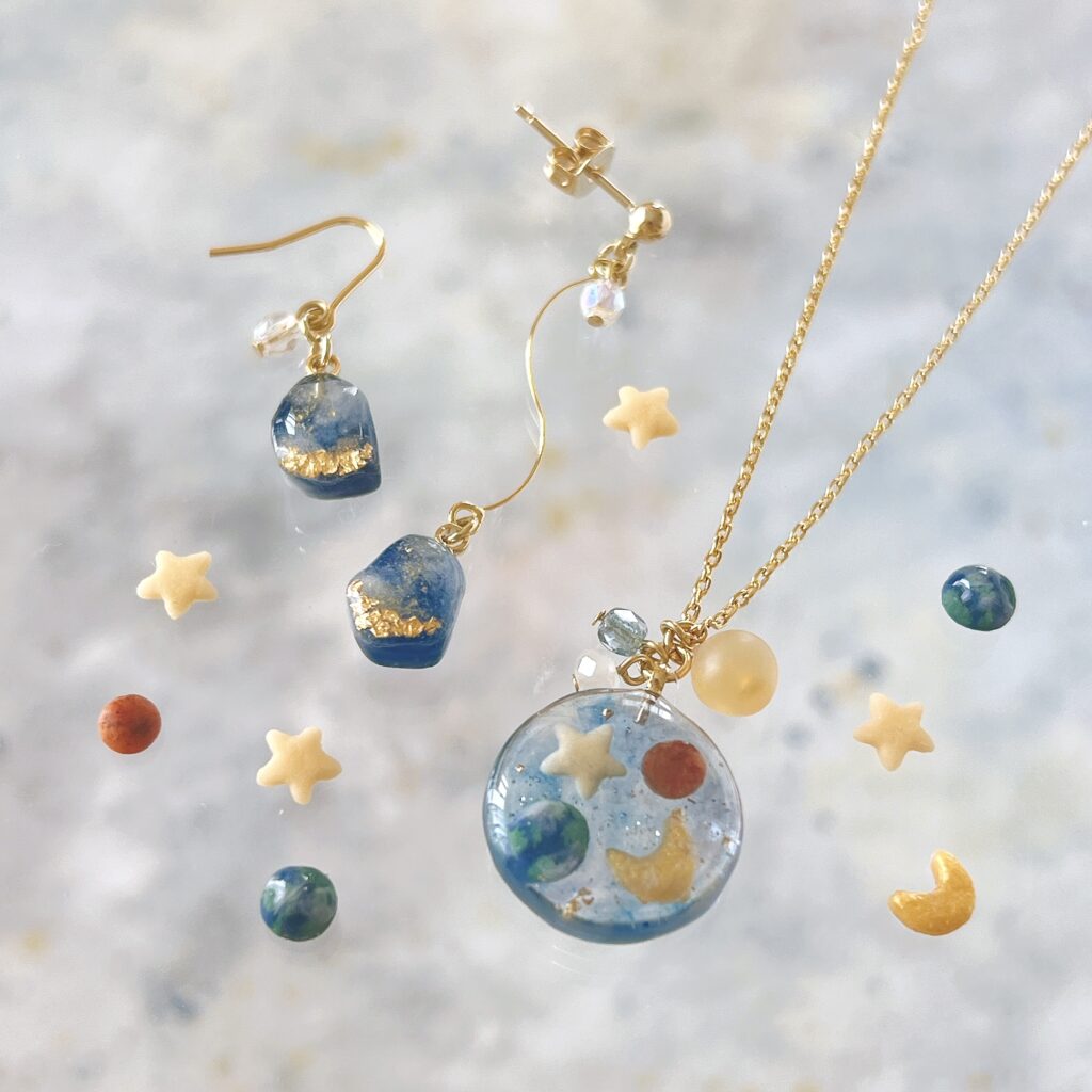 「色の中に日常の暖かさを。」コンセプトにいちからパーツをつくり、レジンアクセサリーを製作しています。