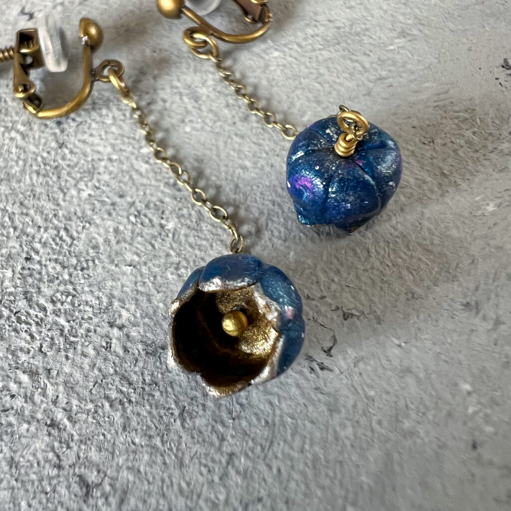 樹脂粘土を用いて ひとつひとつ繊細に咲かせた花に宙色を写し取りました。