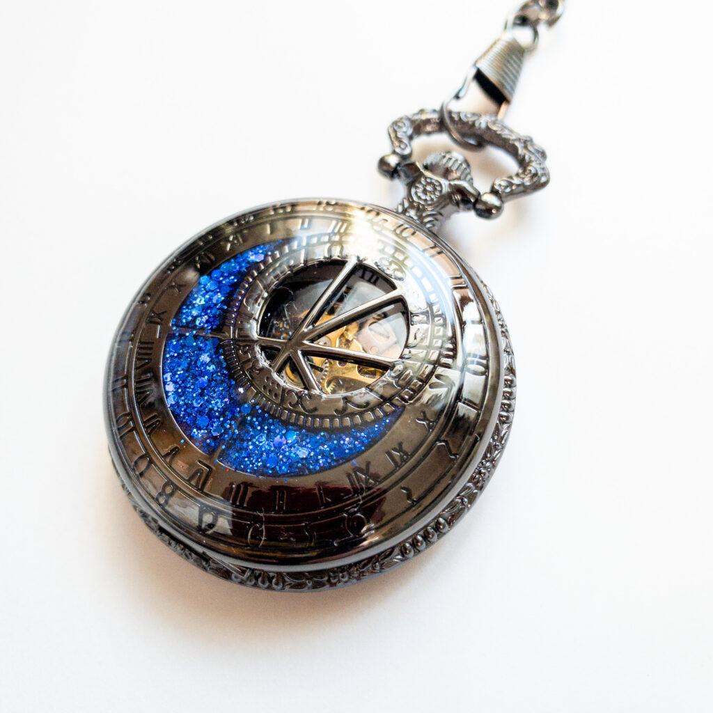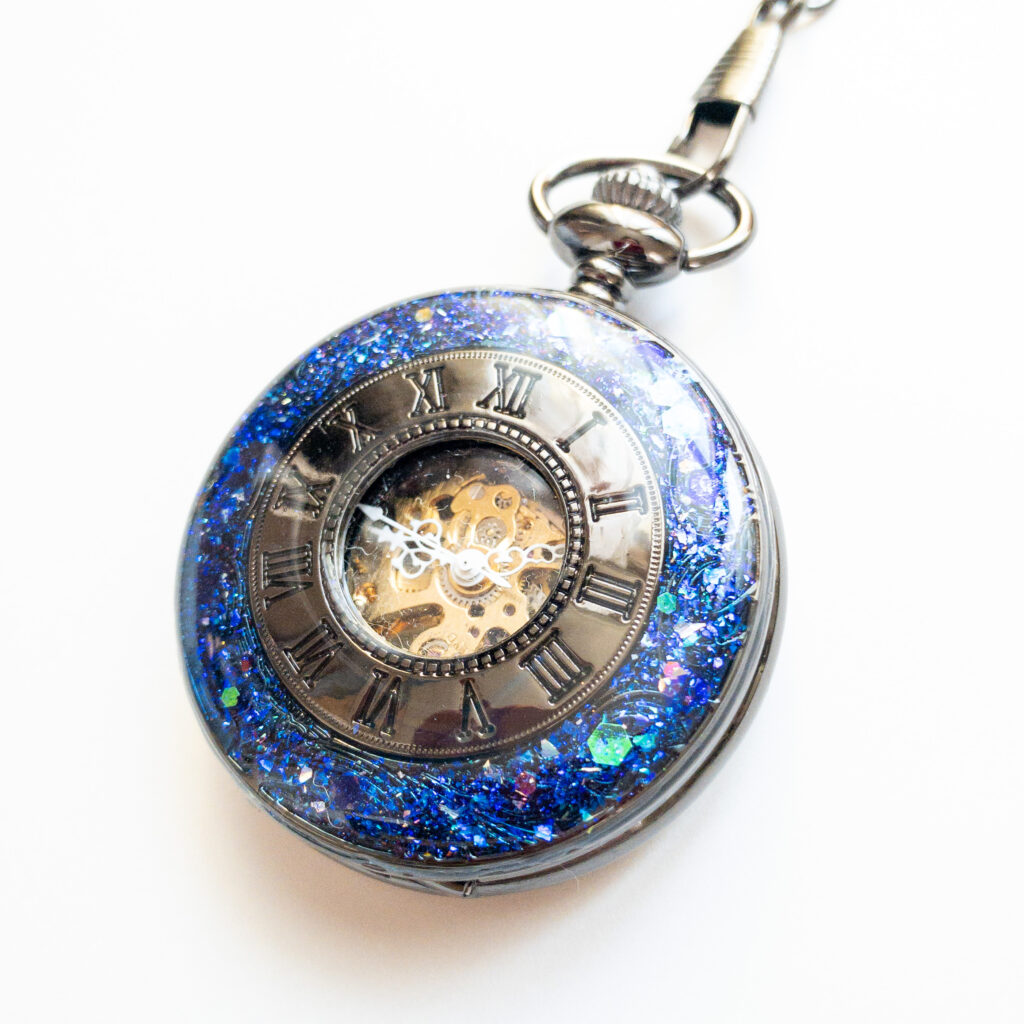 一つ一つお色を調合し制作している、1点物の装飾手巻き式懐中時計です。